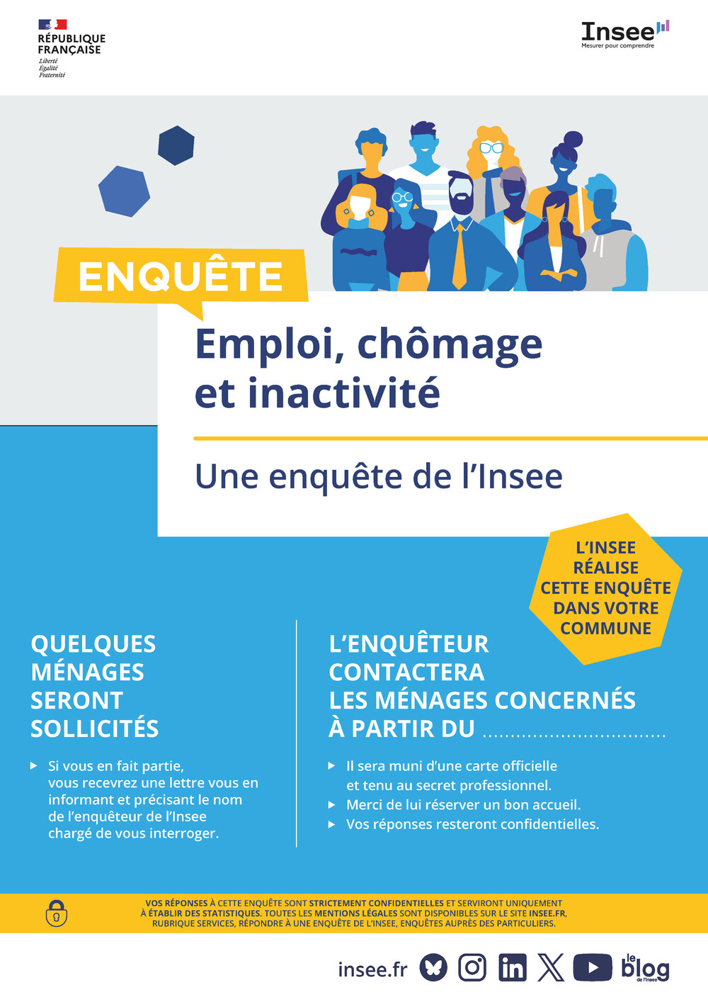 statistique publique, qui inclut les services statistiques ministériels. Pour éclairer le débat public, l’Insee réalise de grandes enquêtes sur l’emploi, le logement, les conditions de vie et d’autres sujets de société.