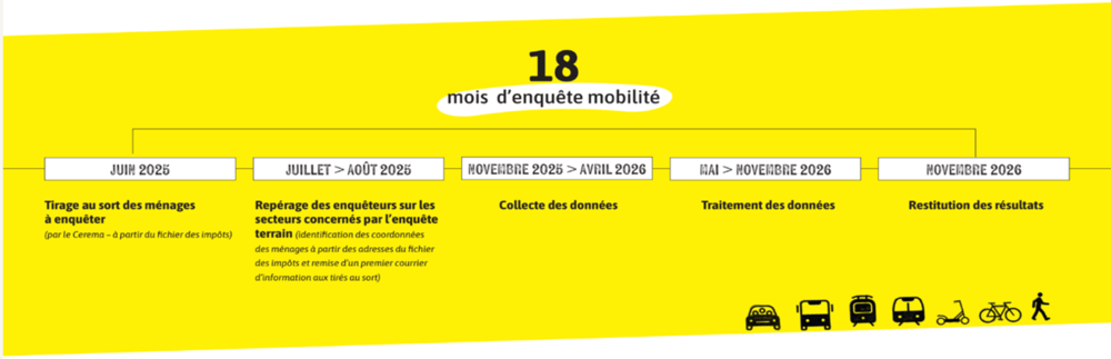 Selon les territoires, l'enquête sera réalisée en face à face, au domicile des ménages tirés au sort et/ou par téléphone (voir la carte en annexe). Actuellement, la préparation de l'enquête est en cours. La collecte des données aura lieu entre novembre 2025 et avril 2026.