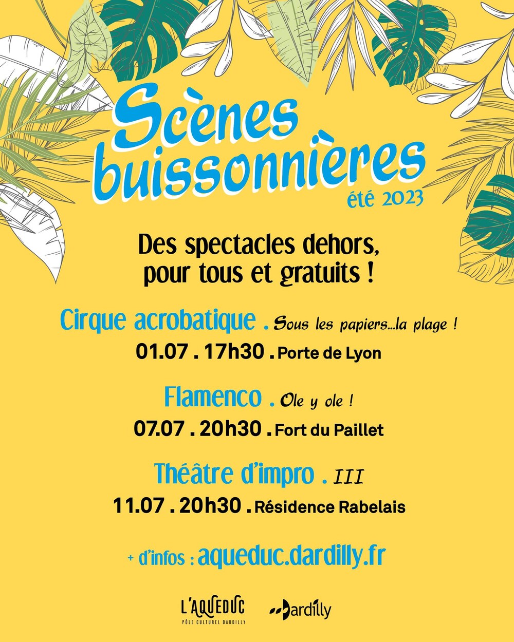 Bonus ! En lien avec le spectacle « Sous les papiers… la plage ! », un atelier « Initiation aux arts du cirque » est proposé aux enfants de 7 à 12 ans dimanche 2 juillet de 10h à 12h au gymnase Roland Guillaud. Gratuitsur inscription auprès de l'Aqueduc de Dardilly