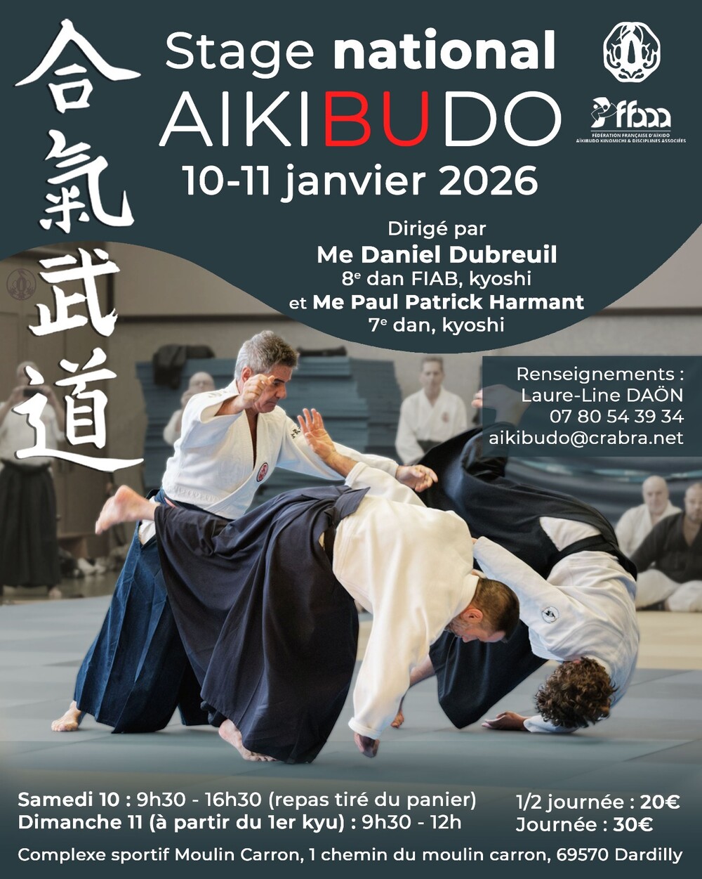 Le Zenshin Budo Ryu vous informe du stage national d'aikibudo en salle du Dojo au complexe sportif Moulin Carron.